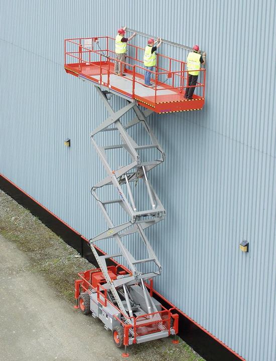 17 meter Skyjack kan fås med dobbelt hydrauliske udskud og selvnivelerende støtteben, utrolig stabil lift.